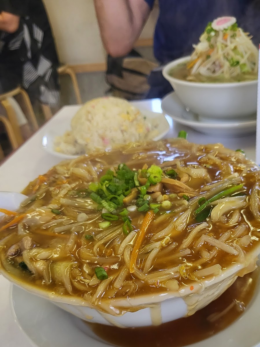 For noodle lovers, チャーシューワンタン麺 (Char Siu Wonton Noodles) is a delicious option. The rich broth, tender wontons, and juicy char siu pork make this dish a favorite among the regulars. If you're looking to pair your meal with something light and fresh, the 野菜炒め定食ゴハン大盛 (Vegetable Stir-Fry Set Meal with Large Rice) is a healthy and satisfying option, loaded with crispy vegetables and served with a generous helping of rice.