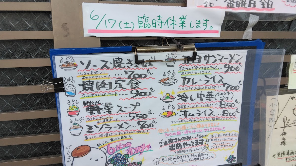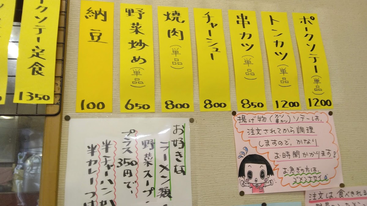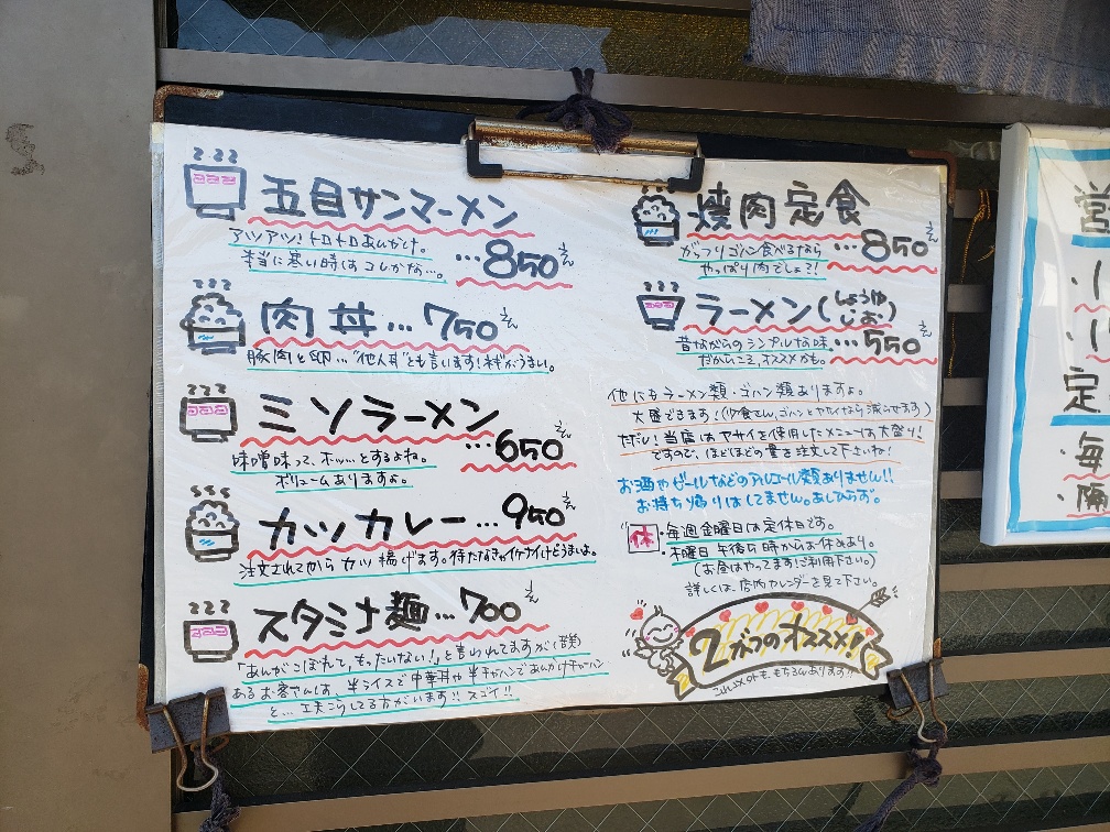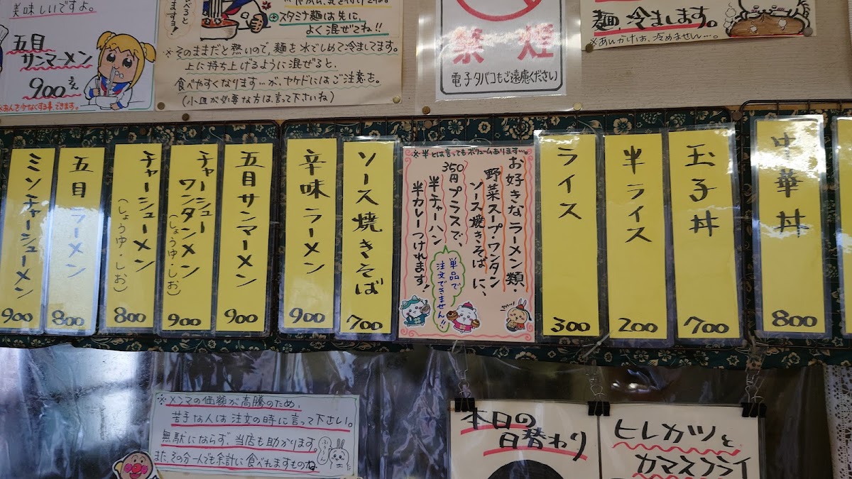The カツカレー 1 000 円 is a great option for those craving curry, featuring a crispy pork cutlet served with flavorful curry and rice. The seasonal 限定メニュー冷やし中華 offers a refreshing cold Chinese noodle dish, ideal for warmer weather. For something lighter, the 五目ラーメン is a filling and well-balanced ramen with mixed vegetables and meat, while the ソース焼そば presents stir-fried noodles with a savory sauce, a favorite among those who enjoy a quick and savory bite.